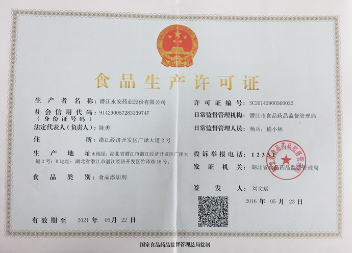 潛江永安藥業(yè)股份有限公司成立于2001年,坐落于江漢平原腹地潛江市國家高新技術(shù)產(chǎn)業(yè)開發(fā)區(qū),占地500余畝,注冊資金貳億玖仟肆佰陸拾捌萬貳仟伍佰元整,是一家擁有自主知識產(chǎn)權(quán)的國家高新技術(shù)企業(yè)。公司股票于2010年3 月5日在深圳證券交易所掛牌上市(股票代碼為002365)。公司具有雄厚的技術(shù)開發(fā)能力,是湖北省創(chuàng)新型企業(yè)和湖北省知識產(chǎn)權(quán)建設示范企業(yè)。公司研發(fā)平臺分別被認定為省級企業(yè)技術(shù)中心和湖北省功能性食品添加劑工程技術(shù)研究中心。 經(jīng)過多年的發(fā)展,公司形成了以食品及藥品添加劑牛磺